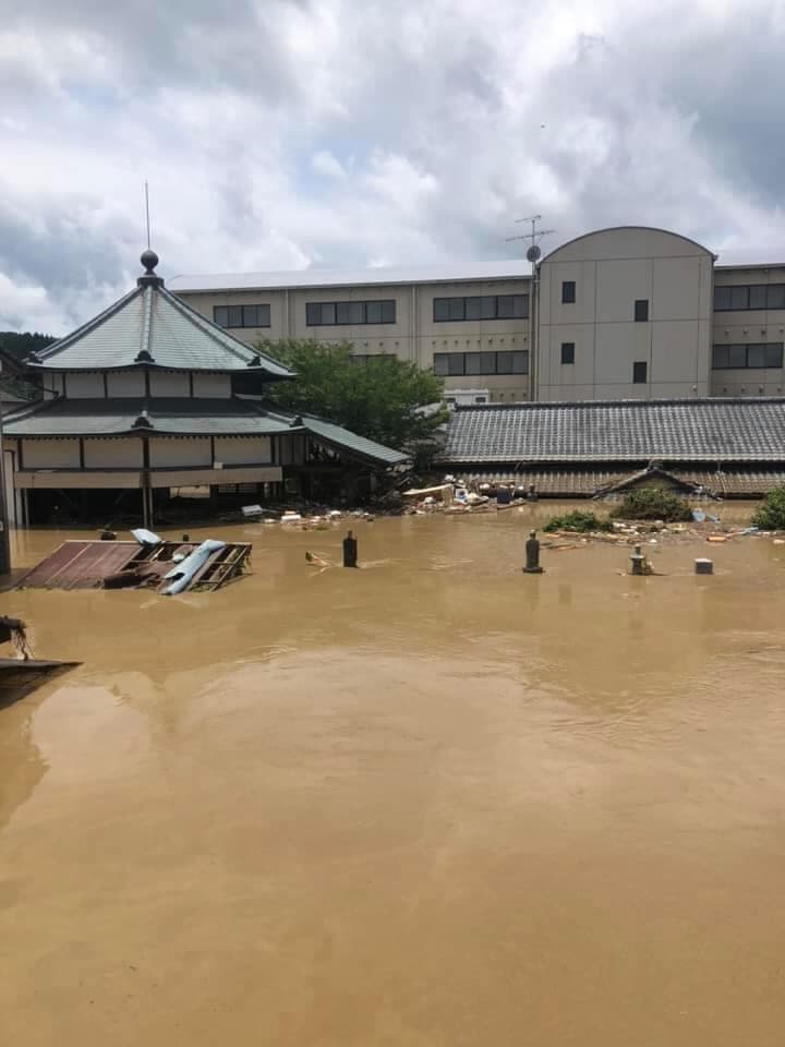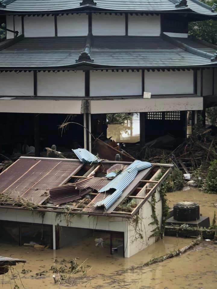 これにより、寺の敷地と建物にも濁流が押し寄せ、すべてを流されました。寺の再建と被害にあった球磨川流域の被災地の復興を果たすべく、あきらめずにひとつづつ出来ることから始めたいと思っております。